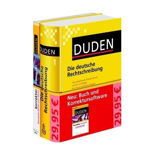 Das Standardwerk „Duden – Die deutsche Rechtschreibung” und die Korrektursoftware „Duden Korrektor kompakt für Microsoft Office und Works” jetzt als leistungsstarkes Duo im preisgünstigen Doppelpack. Während das Referenzwerk zur deutschen Rechtschreibung mit seinen 130.000 Stichwörtern und über 500.000 Beispielen; Bedeutungsangaben und Erklärungen besonders für das schnelle Nachschlagen geeignet ist; sorgt der „Duden Korrektor kompakt” mit seiner Prüfung von Rechtschreibung; Grammatik; Zeichensetzung; Abkürzungen; Schreibvarianten und Schreibstil für einwandfreie Texte am Computer. Buch und Software bieten in Zweifelsfällen Dudenempfehlungen für die einheitliche Schreibung an. Die Korrektursoftware unterstützt exklusiv das Betriebssystem Windows ab Version 2000. Duden – für alle; die sich auf eine korrekte Schreibung verlassen müssen.